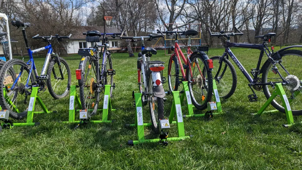 Es handelt sich dabei um insgesamt 8 Einspannvorrichtungen für Fahrräder zur Stromerzeugung und einige Module zur Sichtbarmachung des erzeugten Stroms. Die Module können zu Bildungszwecken, aber auch für private Veranstaltungen beim Kreisjugenring ausgeliehen werden.